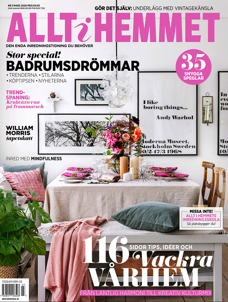 Många av våra möbler och inredningsdetaljer syns flitigt i pressen, det är något vi är mycket glada för.