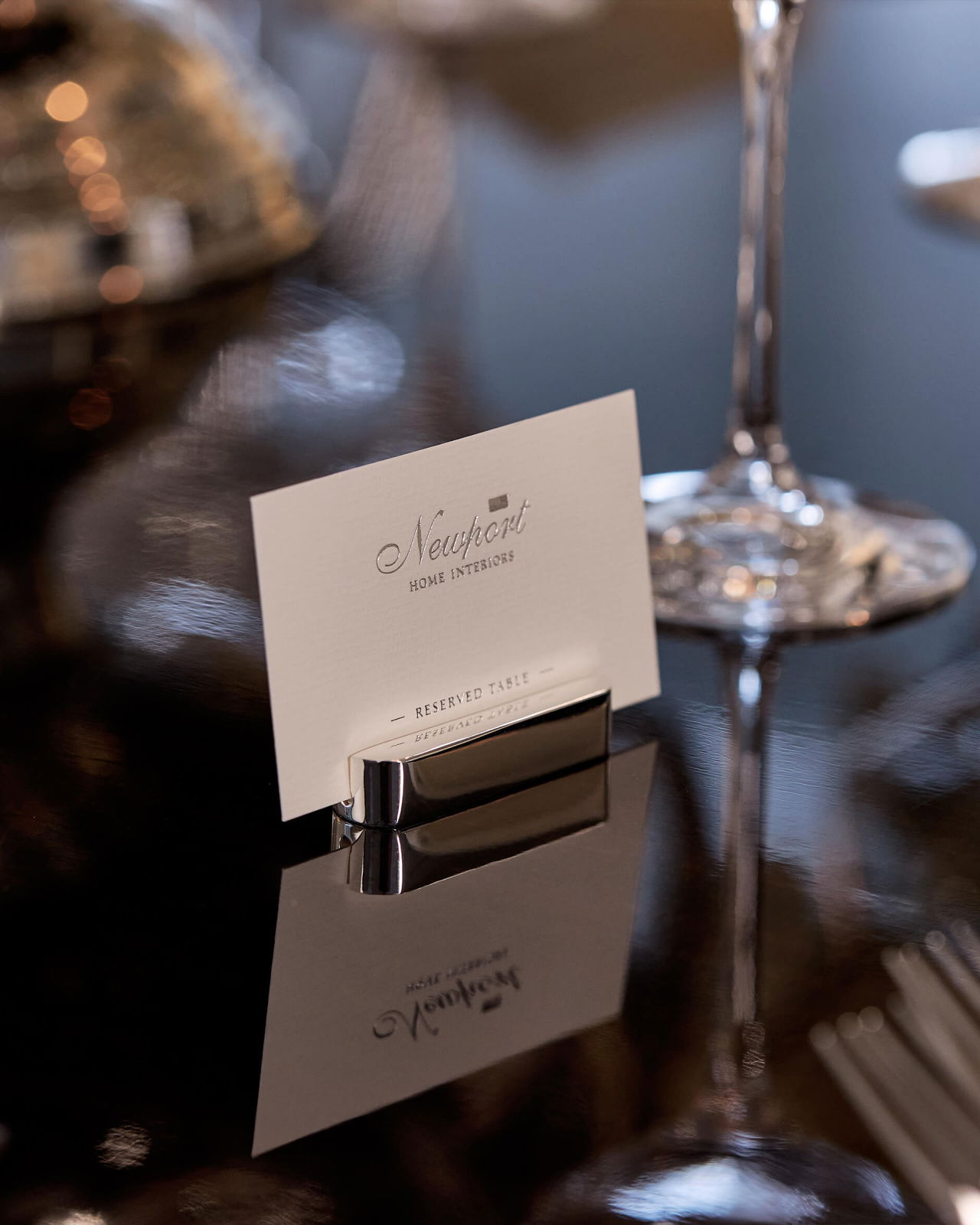 Abbey placeringskortshållare i silver är en elegant detalj som tillför elegans till det dukade bordet .